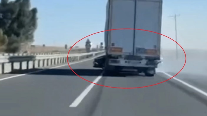 Nusaybin ilçesinde seyir halindeki tırın sürücüsü, kendisini geçmek isteyen otomobile yol vermek isterken, aracı önüne alıp sürükledi. Olayda yaralanan olmazken, o anlar cep telefonu kamerasıyla kaydedildi.