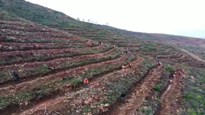 Çıkan orman yangınlarında doğal yollarla rehabilitesi mümkün olmayan 900 hektarlık kısımda teraslama yöntemiyle gerçekleştirilen çalışma sonuç verdi.. Dikilen fidanlar büyüdü.