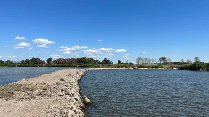 Edirne'de Meriç Nehri'nde debi düşmesi sonrası nehre deniz suyu karışmaması için yapılan set bu yıl mevsim öncesi yapıldı.
