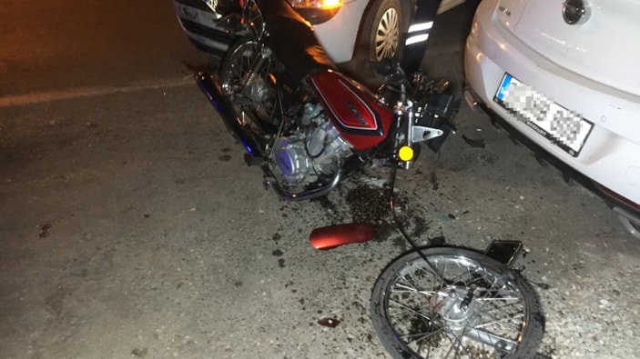 Çarpmanın etkisiyle ön tekeri kopan motosikletin sürücüsü S.K. yaralandı. 112 acil çağrı merkezine yapılan ihbar üzerine kaza yerine jandarma ve sağlık ekibi sevk edildi.