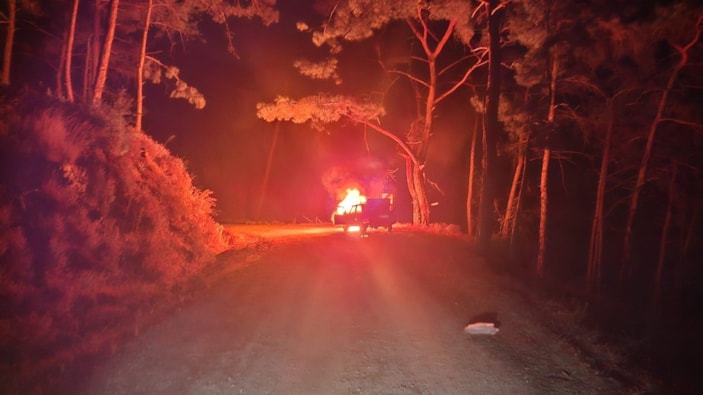 Muğla'da alev alan araçtaki yangın ormana sıçramadan söndürüldü