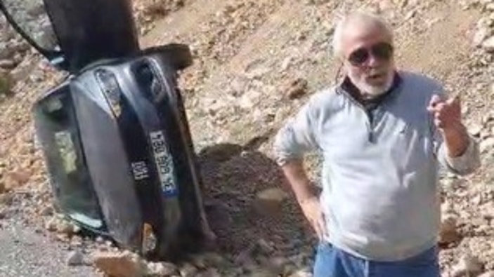 Kazanın ardından yoldan geçen bir vatandaş ise bu anları kayıt altına aldı. Otomobil sürücüsü, “Manzarayı izlemek için durdum. Dağların resmini çekmek istedim. Otomatik araba kendi kendine kaymaya başladı. Arabada yana yatık şekilde düştü” dedi.