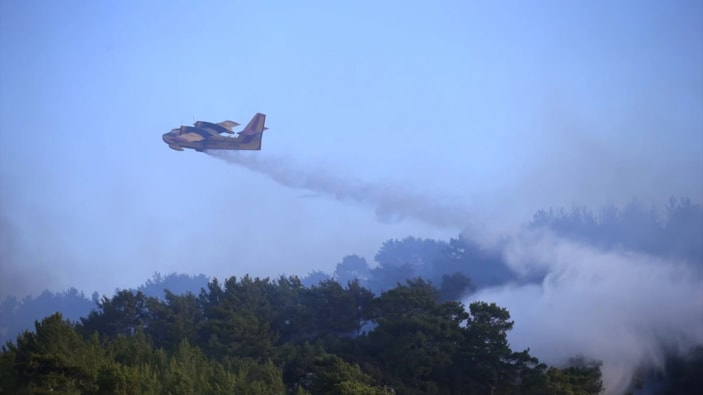Ormanlık alanda çıkan ve rüzgarın etkisiyle kısa sürede büyüyen yangına müdahaleler sürerken Milli Savunma Bakanlığı, TSK'nın 5 helikopter ile yangın söndürme çalışmalarına destek verdiğini duyurdu.