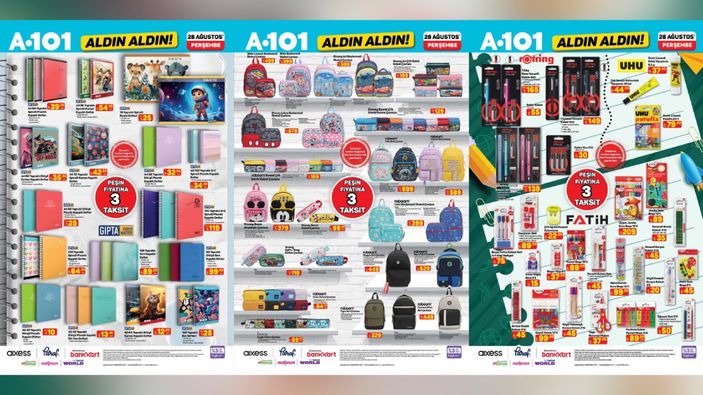 A101, 28 Ağustos 2025 tarihli indirim kataloğunu yayımladı. Bu hafta özellikle kırtasiye ürünleriyle öne çıkıyor.