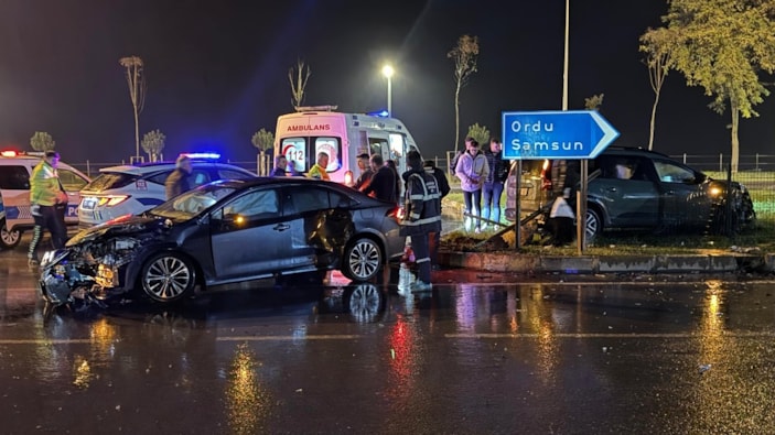 Ordu Ünye'de Fevzi Çakmak Mahallesi Devlet Sahil Yolu Caddesi üzerinde, Fatsa istikametine seyir halindeki A.Y. yönetimindeki 52 ADR 687 plakalı otomobil, tali yoldan çıkarak kavşaktan dönmek isteyen A.E.S. (19) idaresindeki 34 GVC 208 plakalı otomobille çarpıştı.