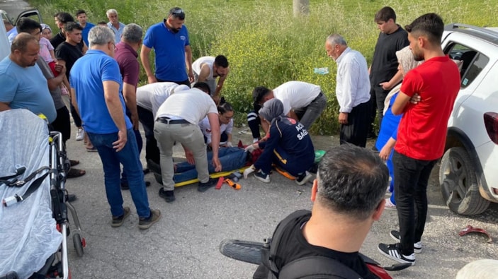 Çarpışmanın etkisi ile savrulan motosiklet sürücüsü Ahmet Ö., motosiklette yolcu olan İbrahim E. ile otomobil sürücüsü H. Murat M. yaralandı.