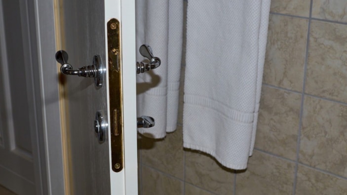 Ancak kapı kolunun üzerine asılan bir havlu, bu yöntemi etkisiz hale getiriyor ve yetkisiz kişilerin odaya erişmesini zorlaştırıyor.