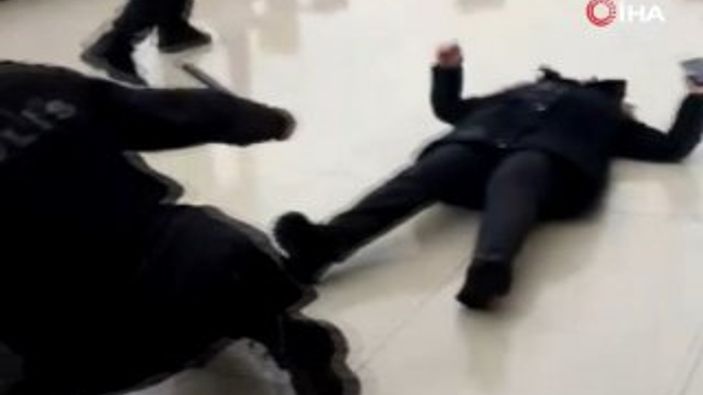 POLİSLE BİRLİKTE YERE DÜŞTÜ