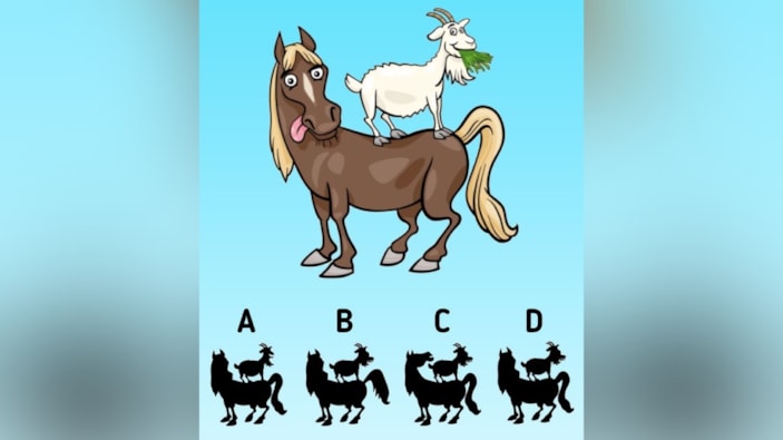 Bugünkü meydan okumamızda bir keçinin atın sırtında durduğu ilginç bir sahne yer alıyor. Ancak esas göreviniz bu tatlı hayvanların gerçek gölgesini bulmak.
