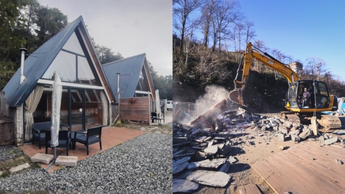 Görüntülerde korumaya alınan alanlarda altyapı yapılmadan çevre kirliliğine ve yangınlara neden olacak şekilde bungalov tarzı yapıların yıkıldığı görülüyor.