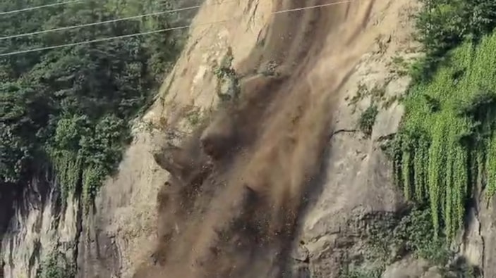 Kameraların kayıtta olduğu esnada yamaçtan kopan taş ve toprak parçaları kayarak aşağıya yuvarlandı.