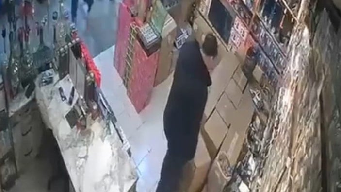 Olay anı iş yerinin güvenlik kamerasına yansıdı.