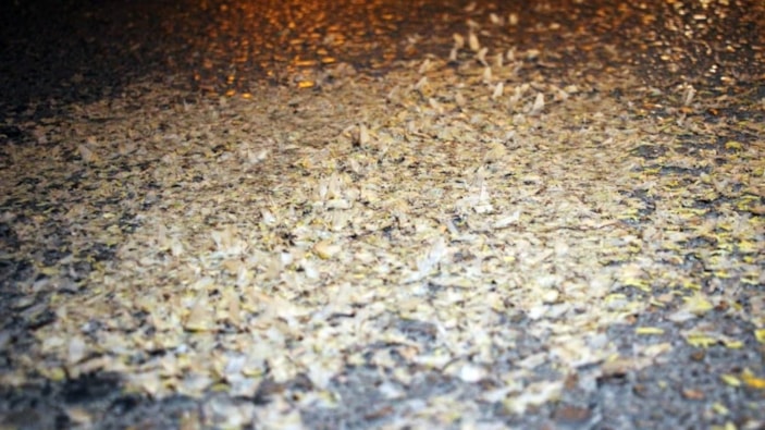 Aydınlatma direklerinin çevresinde toplanan binlerce sineğin ‘ölüm dansı' gerçekleşti. Her yıl tekrarlanan ve birgün sineklerinin adeta kar yağışını anımsatan ‘ölüm uçuşu' görsel şölen oluşturdu.