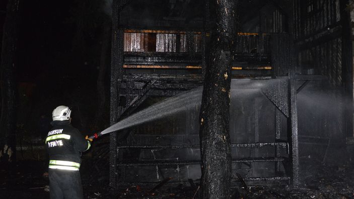 Mustafa Kemal Atatürk'ü Samsun'un Havza ilçesine davet eden heyette bulunan Bayram Efendi'ye ait yaklaşık iki asırlık konağın bahçesindeki kameriyede henüz belirlenemeyen nedenle yangın çıktı.