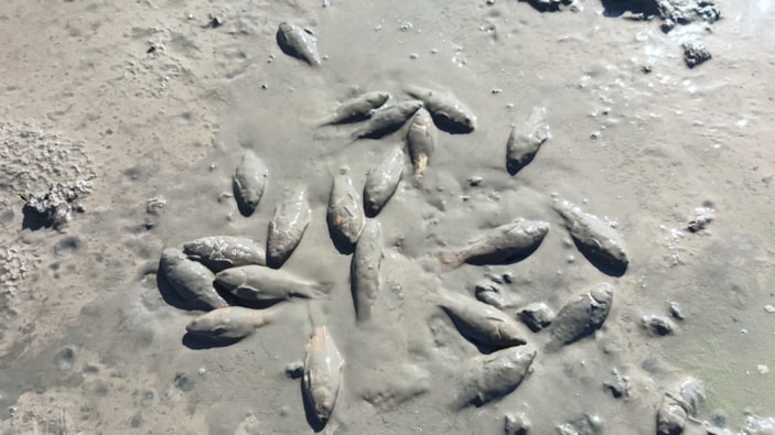 Gölette kalan balıklar çamura saplanarak oksijensiz kaldı ve telef olma riskiyle karşı karşıya kaldı.