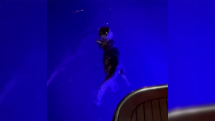 Şehir merkezi balıkçı teknelerinin bulunduğu mevkide görüntülenen su samuru balıkçı teknesinde yiyecek aradıktan sonra denize daldı.