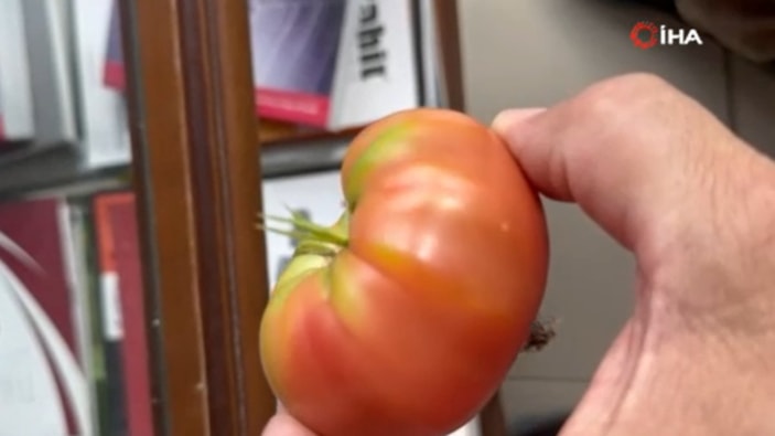 Doğal yollarla büyüyen domateste meydana gelen bu ilginç olay, bölge halkı arasında da merak konusu oldu.