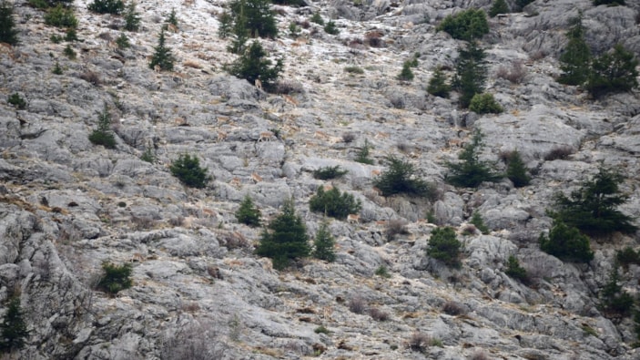 Tarım ve Orman Bakanlığı, dik bir yamaca dağılmış onlarca yaban keçisinin fotoğrafını paylaştı.