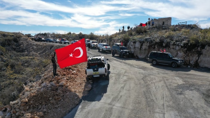 Şırnak'ta terörden temizlenen Gabar Dağ'ına çıkan off-road pilotları, eşsiz manzara karşısında Türk bayrağı açarak hatıra fotoğrafı çektirdiler.