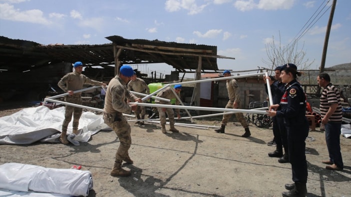 Bunun üzerine Jandarma Komutanlığında görevli komandolar, ailenin Fatih Mahallesi'nde yaşadığı eve geldi. Komandolar, yaklaşık 20 dakikada çadırı kurarak aileye teslim etti.