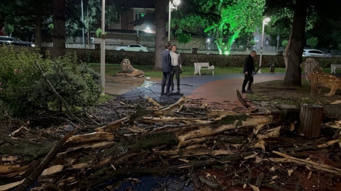 Tokat'ta akşam saatlerinde etkili olan fırtına nedeniyle ağaçlar devrildi.