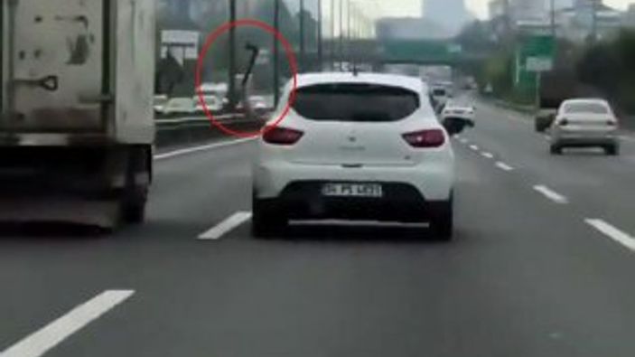 İstanbul trafiğinde kamyon şoförüne kızan bir araç sürücüsü, seyir halinde giderken araçtan çıkardığı baltayı kamyona vurmaya başladı. O anlar, cep telefonu kamerasına saniye saniye yansıdı.