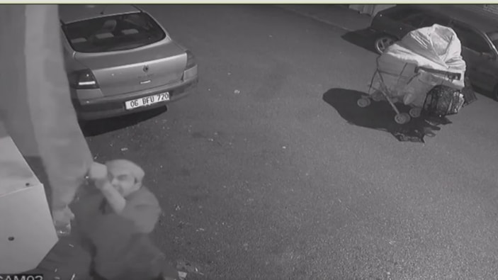 İbrahim K., çevresini kontrol ettikten sonra birinci kattaki camda asılı olan Türk bayrağını çekerek söküp, çöpleri topladığı el arabasına koyup oradan uzaklaştı.