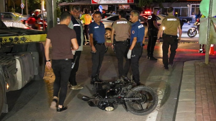 Görüntülerde, tırın dönüş yaptığı sırada motosikletle çarpıştığı görülüyor. Kayıtlarda, motosiklet sürücüsünün tırın altına girdiği yer alıyor.