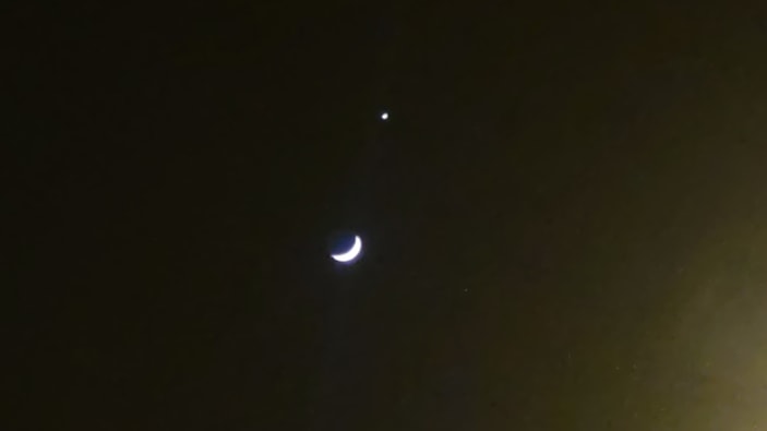 Hilal biçimi alan aya çok yaklaşan Venüs gezegenin Türk bayrağındaki formuna kavuşması, objektiflere yansıdı.