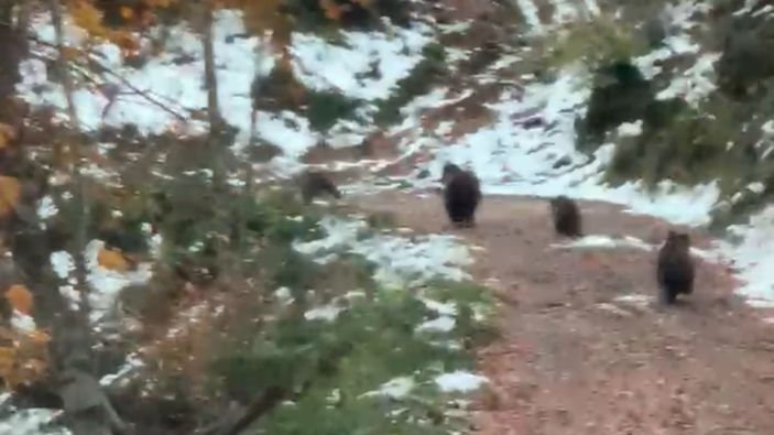 Geçtiğimiz günlerde etkili olan yağış nedeniyle karlı bir zemine sahip olan ormanda görülen ayıların, henüz kış uykusuna yatmadığı gözlemlendi.