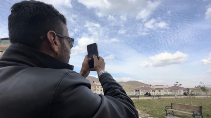 Bir anda taneli bulutlar yoğunlaştı. İnanın muhteşem bir görüntü var. Biz de o anı kaçırmamak için hemen kayıt altına aldık. Bunu araştırdığımızda, bu bulutlara sirrokümülüs deniliyormuş. Nadir görülen bir durum. Yaşanan bir doğa olayıdır. İnan oluşan bu görüntü herkesi cezbetti. Şu an muhteşem görünüyor.