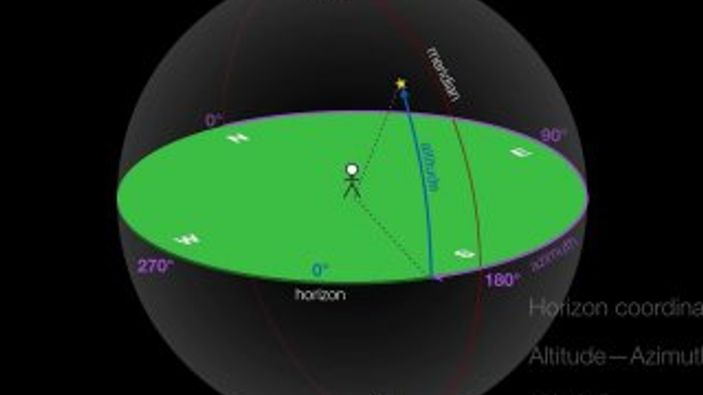 Azimut diğer bir ifadeyle yıldızın bulunduğu göksel meridyenin ufuk düzleminde kestiği noktanın kuzey kutup noktası ile yaptığı açı olarak bilinir. Azimut açıları 0, 90, 180 ve 270 derece olarak değişmektedir.