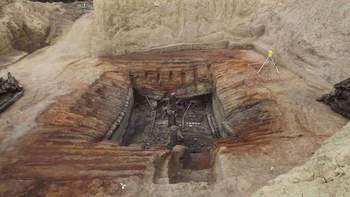 Kurgan mezar, üzerine dairesel biçimde toprak yığılarak yükseltilen mezarlara deniyor. Bu tip mezarların içinde genellikle ölü hediyeleri olarak vazolar, silahlar ve at iskeleti bulunuyor.