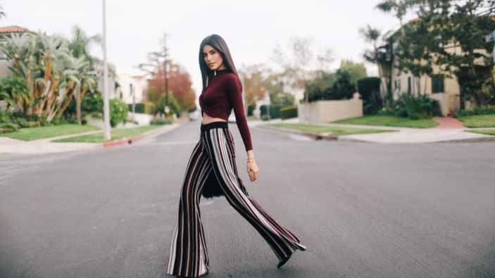 Palazzo pantolonlar, bacaklarınızı daha uzun hale getirirken ve daha uzun görünmenizi sağlarken yüksek topukluları veya platform ayakkabılarını gizlemenin harika bir yoludur. Sakin ve basit tek tonlu stilleri seçmeyi deneyin. Yüksek bel pantolonlu kısaltılmış üst, birçok mevsim moda olan bir kombinasyondur. Bu numara üst ve alt vücut oranlarınızı koruyacak ve bacaklarınızın daha uzun görünmesini sağlayacaktır. Bir kazak veya bluz seçtiyseniz, ince bir kemer takabilir veya örneğimizde olduğu gibi pantolonun içine sokabilirsiniz.