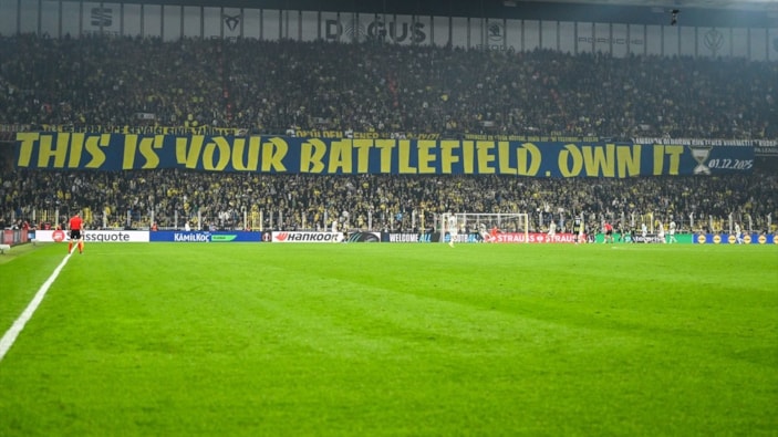 Süper Lig'in 14. haftasında Fenerbahçe'nin ezeli rakibi Galatasaray ile karşılaşacağı maç hatırlatılarak üzerinde "This is your battlefield. Own it. 01.12.2025" (Burası senin savaş alanın. Sahip ol) yazılı pankart açıldı.
