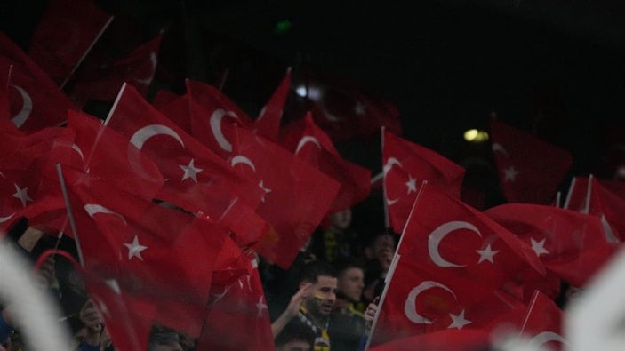 Fenerbahçe'nin UEFA Avrupa Ligi’nin 7’nci haftasında Aston Villa’yı konuk edeceği maç öncesi tribünler Türk bayraklarıyla donatıldı.