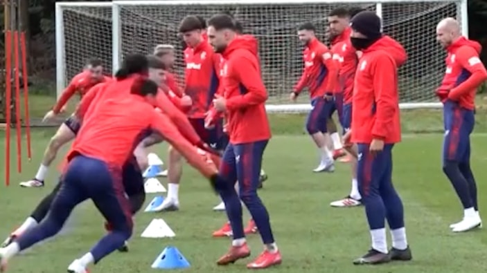 Futbolcuların pas yaparak sürdürdükleri idmanın basına kapalı bölümünde maçın taktik çalışmasının gerçekleştirildiği öğrenildi.