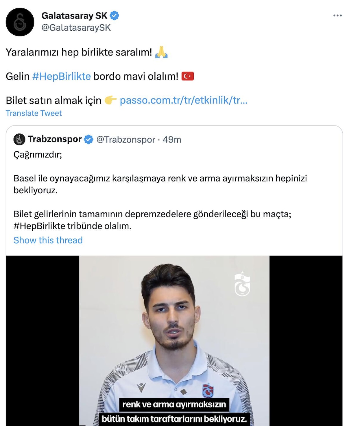 Trabzonspor'un yaptığı bu paylaşımın ardından ise Fenerbahçe, Galatasaray ve Beşiktaş geri dönüş sağlayarak desteklerini iletti.