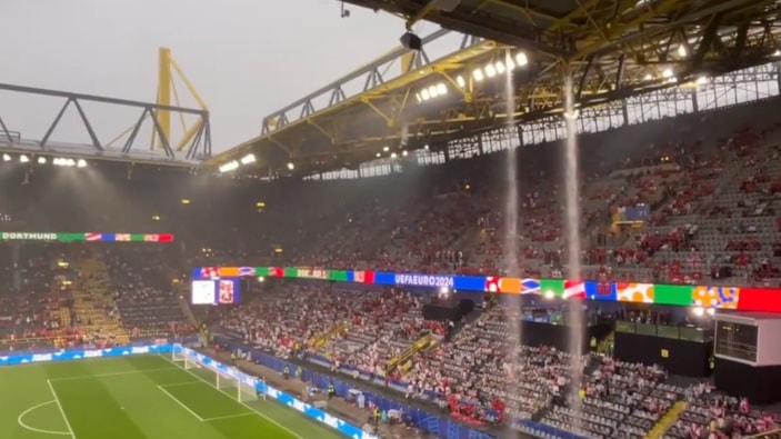 Dortmund'da yoğun yağmur! Stadyum çatısı dayanmadı