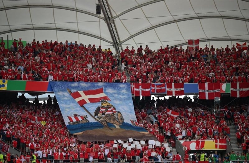 UEFA maçlarında 51 bin kişi kapasiteyle kapılarını açan Stuttgart Arena'da Danimarkalı taraftarlar tribünlerde çoğunluğu oluşturdu.