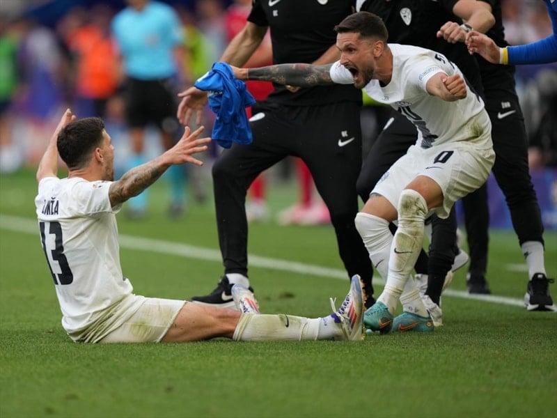 77. dakikada Slovenya beraberliği yakaladı. Sağdan kullanılan kornerde savunmanın müdahale ettiği top ters kanada açıldı. Ceza sahası ön çizgisi gerisinde, sol çapraza düşen topa Janza gelişine vurdu. Savunmadaki Hjulmand'a çarpan meşin yuvarlak kaleci Schmeichel'ı yanıltarak ağlara gitti: 1-1