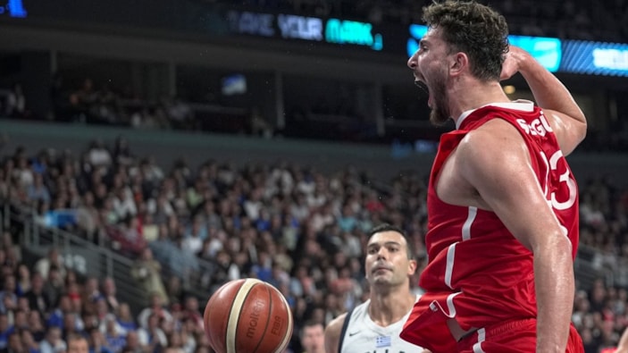Milli basketbolcular Alperen Şengün ile Furkan Korkmaz, EuroBasket 2025'te Türkiye'nin Yunanistan'ı 94-68 mağlup ederek finale yükseldiği müsabakanın ardından basın mensuplarına açıklamalarda bulundu.