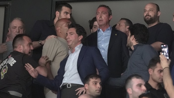 Derbinin son saniyelerinde salonda bir gerginlik çıktı. Siyah-beyazlı taraftarların küfürlü tezahüratının ardından Fenerbahçe Kulübü Başkanı Ali Koç, saha kenarından hızlı adımlarla yöneticilerin bulunduğu locaya doğru yöneldi.
