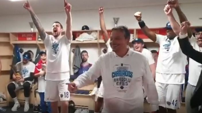 Euroleague şampiyonu Anadolu Efes, sosyal medya hesaplarından soyunma odasında yaşanan sevinci ve koç Ergin Ataman'ın takıma yaptığı konuşmayı paylaştı.