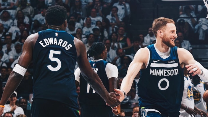 NBA'de heyecan 2 karşılaşmayla devam etti. Batı Konferansı yarı final 5. mücadelesinde Minnesota Timberwolves, Target Center'da karşılaştığı Golden State Warriors'ı 121-110'luk skorla mağlup etti ve seriyi 4-1'e getirerek, konferans finaline yükseldi.