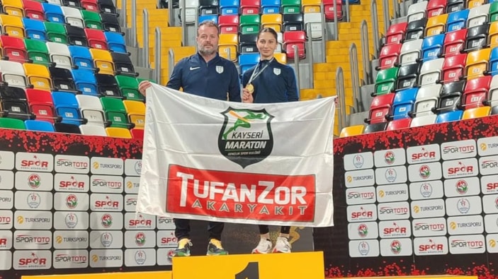 Şampiyonada mücadele eden Kayserili sporcu Aleyna Karabulut, Üç Adım Atlamada Türkiye Şampiyonu oldu.