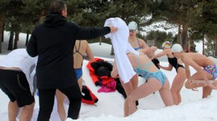 3 hafta boyunca sıkı antrenman programı uygulayan milli yüzücüler, kampın son günündeyse eksi 10 derecede Palandöken'de bulunan 3 metrelik kar yığınlarında yüzdü.