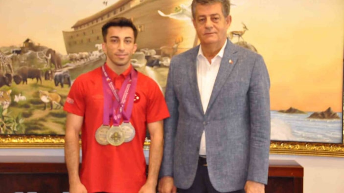 Şırnak Belediye Başkanı Mehmet Yarka, halterde 3 altın madalya alarak Avrupa şampiyonu olan Harun Algül’ü makamında ağırladı.