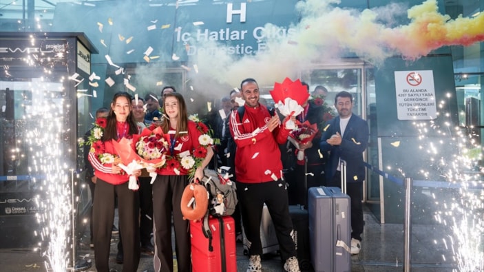 Milli sporcuları, Esenboğa Havalimanı'nda federasyon ve ASKİ Spor Kulübü yetkilileri ile yakınları çiçeklerle karşıladı.