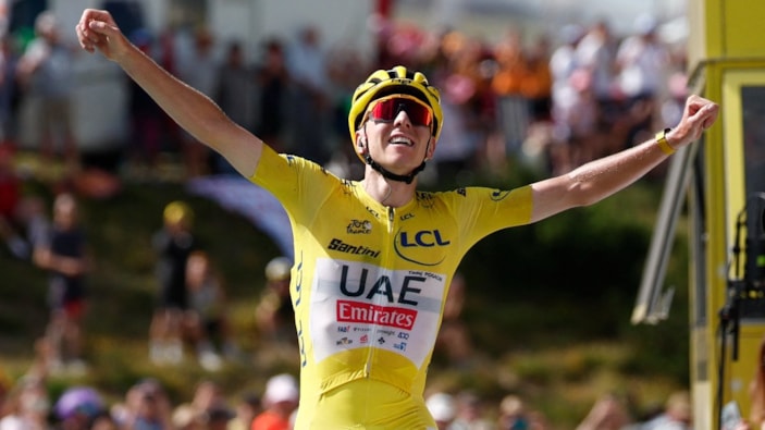 Etabı 5 saat 13 dakika 55 saniyede bitiren Pogacar, Jonas Vingegaard (Visma-Lease a Bike takımı) ve Remco Evenepoel'in (Soudal-QuickStep) önünde birinci oldu.